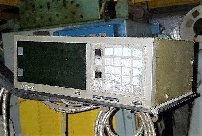 MITSUI SEIKI 8'' X 18'' HYDRAULIC SURFACE GRINDER Model #: MSG-250H-2AH S/N: 84083C47 Spindle Motor: 1 Hp, 208-240/480, 3 ph, 60 Hz WORKING SURFACE OF TABLE: 8" x 19" MAXIMUM SURFACE GROUND: 9-1/2" x 20" MAXIMUM DISTANCE BETWEEN TABLE SURFACE AND SPINDLE CENTER: 22-1/2" RANGE: LONGITUDINAL: 20" CROSS (AUTOMATIC): 9-1/2" CROSS (MANUAL): 10" VERTICAL: 16" SIZE OF STD. GRINDING WHEEL: 7" x 1/2" x 1-1/4" HOLE SIZE OF MAX. GRINDING WHEEL: 8" x 3/4" FACE x 1-1/4" HOLE INF. VARIABLE LONGITUDINAL FEEDS: 5 - 68 FPM AUTO CROSS FEED TO TABLE PER STROKE: .02" - 0.05" IPM AUTO VERT. FEED INCREMENTS, TEN STEPS: .0001" - .001" RAPID CROSS FEED RATE: 2 - 17 IPM ELEVATING HANDWHEEL GRADUATIONS: 0.0001" CROSS FEED HANDWHEEL GRADUATION: 0.001" APPROX. MACHINE WEIGHT: 3,490 LBS SONY DRO MODEL #: LH10-2017 MAGNETOOL ELECTROMAGNETIC CONTROLLER w/FINE LINED ELECTROMAGNETIC CHUCK