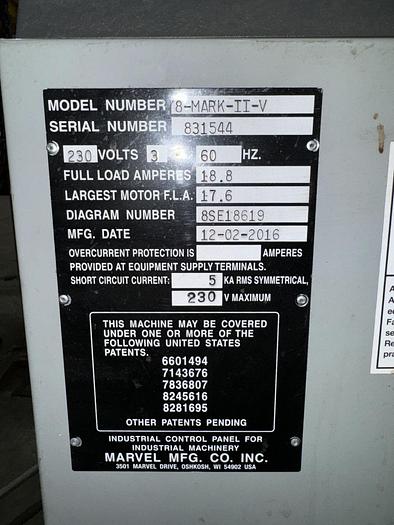 2016 Marvel Series 8 Mark II-V Vertical Tilt Frame Bandsaw