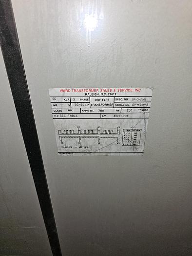 60 KVA Ward Step Down Transformer H.V. 480/200 L.V. 400Y/231 Class AA